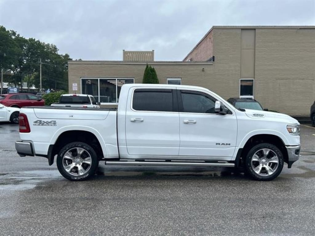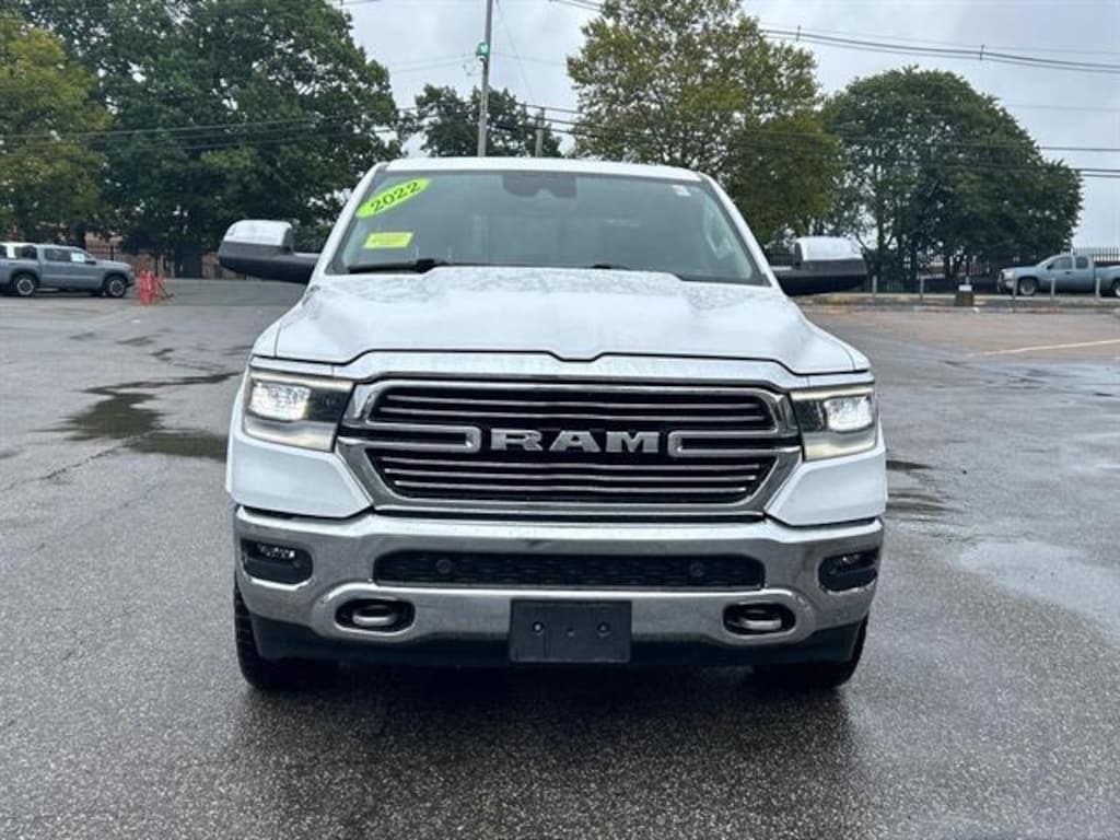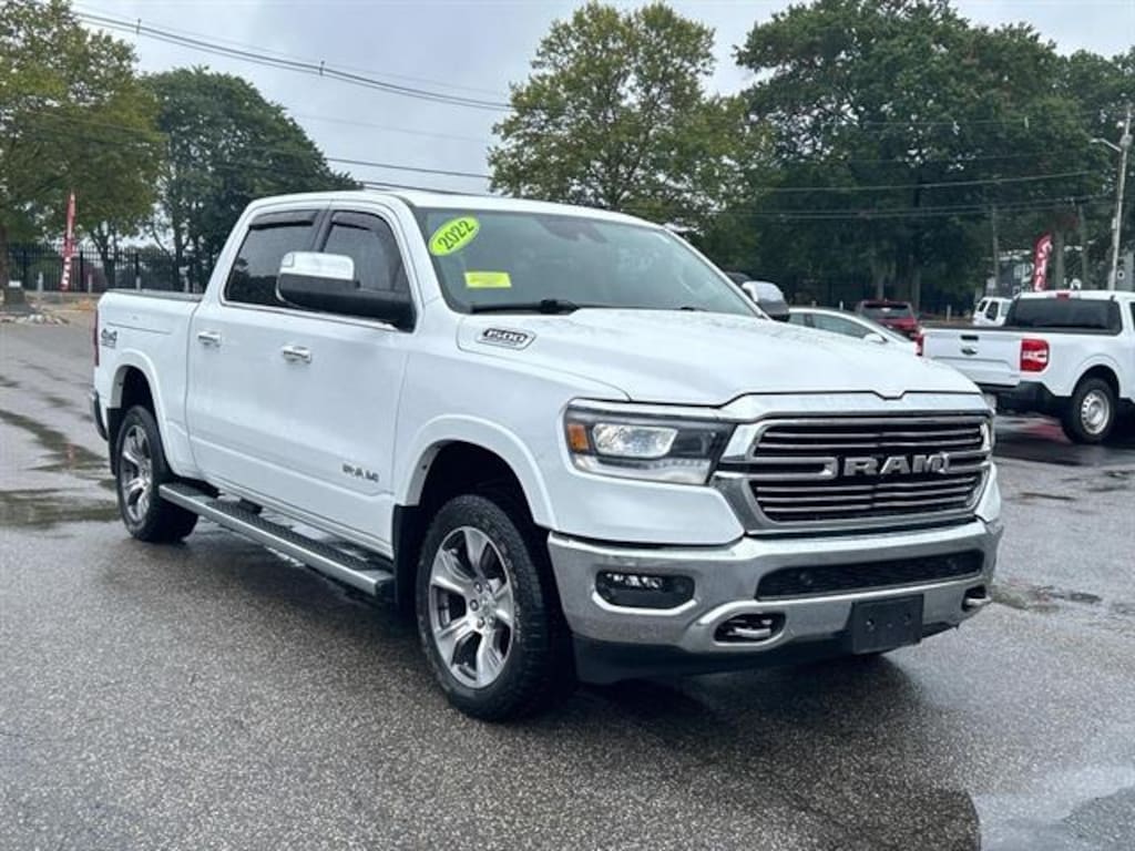 Clean CARFAX CPO GO, Panoramic Roof, 4-Corner Air Ride Suspension, Multi-Function Tailgate, RamBox Cargo System, LOADED!! Discover the power and luxury of this White 2022 Ram 1500 Laramie 4x4 Crew Cab. With its legendary HEMI 5.7L V8 engine paired to an 8-speed automatic, this truck delivers robust performance whether you're towing, hauling, or commuting. Enjoy advanced technology with UConnect 5 Nav featuring a massive 12-inch touchscreen, wireless Apple CarPlay and Android Auto, and a customizable 7-inch digital instrument cluster. The Laramie Level B Equipment Group and leather-trimmed bucket seats offer comfort and style, while the Trailer Tow Group B, Class IV hitch, trailer brake controller, and electronic locking rear differential ensure you're ready for any job. Other premium features include a dual-pane panoramic sunroof, 4-corner air suspension, ParkSense front/rear park assist, power folding trailer tow mirrors, heated and ventilated front seats, power adjustable pedals, remote start, and RamBox cargo management. Rugged 4x4 capability is matched by chrome wheel-to-wheel side steps and all-terrain tires, making this Ram as tough as it is refined. Don't miss out on this fully equipped, versatile pickup-schedule your test drive today! Chrysler Jeep Dodge Ram 24 is your one-stop-shop for all your automotive needs so don't hesitate; Call us now and ask to speak with one of our fully certified and customer-friendly Sales or Service Consultants. From there, you will be able to schedule a test drive, Brake job or Oil Change of any of our 11 locations. We have New and Pre-Owned vehicles on the lot! Customer First Award for Excellence CJDR 24 is committed to offering our Brockton customers with the highest level of customer service, which is why we are thrilled to be a honored recipient of the FCA Customer First Award for Excellence. This prestigious award is designated for only those dealerships exemplifying extraordinary care and dedication to their customers, in five key areas of performance: Give us the opportunity to show you. Call or visit us today.