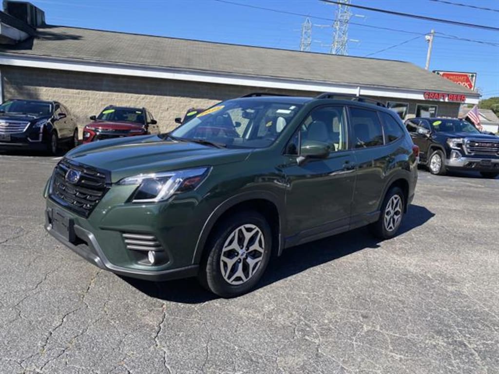 Experience adventure in this dark green 2022 Subaru Forester AWD Premium! With only 13,530 miles, this versatile crossover offers Subaru's legendary all-wheel drive and a fuel-efficient 2.5L engine. Stay comfortable with heated front seats, a power panoramic moonroof, and automatic climate control. Advanced safety features include Front Automatic Emergency Braking, Lane Keeping Assist, Adaptive Cruise Control, and Pedestrian Detection. The Premium trim adds a power driver's seat with lumbar support, STARLINK infotainment with a 6.5-inch touchscreen, Apple CarPlay/Android Auto, Bluetooth, and multiple USB outlets. Enjoy added convenience with push-button start, proximity key entry, rearview camera with washer, and ample cargo space with 60/40 split rear seats. Finished in a stylish dark green with black roof rails and underguard accents, this Forester is ready for any journey. Take it home today and see why Subaru is a leader in safety, comfort, and capability! Stateline Subaru is Southern Massachusetts's Premier Family-Owned New Subaru and Used Car Dealer, serving the needs of customers from Rhode Island to Boston, Taunton to Cape Cod, all the Greater Boston area, and everywhere in-between for nearly 20 years. In addition to sales, we also offer a state-of-the-art service department with all Subaru Master-Certified Technicians, an Auto center for quick in-and-out service, and of course an outstanding Parts department. Stateline Subaru is your one-stop-shop for all your automotive needs. So don't hesitate. Call us now and ask to speak with one of our fully certified and customer-friendly Sales or Service Consultants. From there, you will be able to schedule a test drive, Brake job or Oil Change of any of our 11 locations. We have New and Pre-Owned vehicles on the lot! Stateline Subaru's commitment to providing you with a pleasant shopping and buying experience is unmatched. We can assure you that you'll have a pleasant, no hassle buying experience. Visit us today. Sales price reflects financing with dealer. See dealer for details.